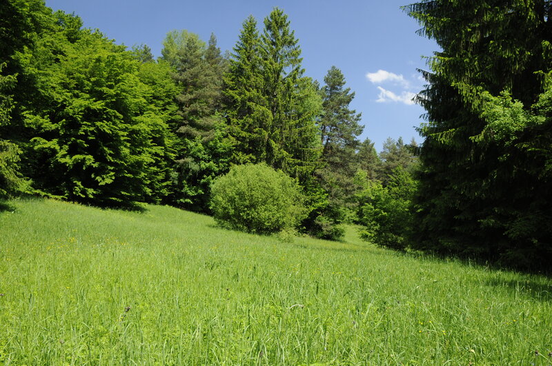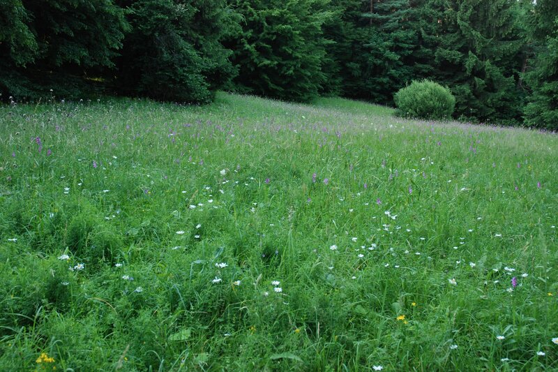 Řídký smíšený porost s řadou světlin a výskytem vstavačovitých.